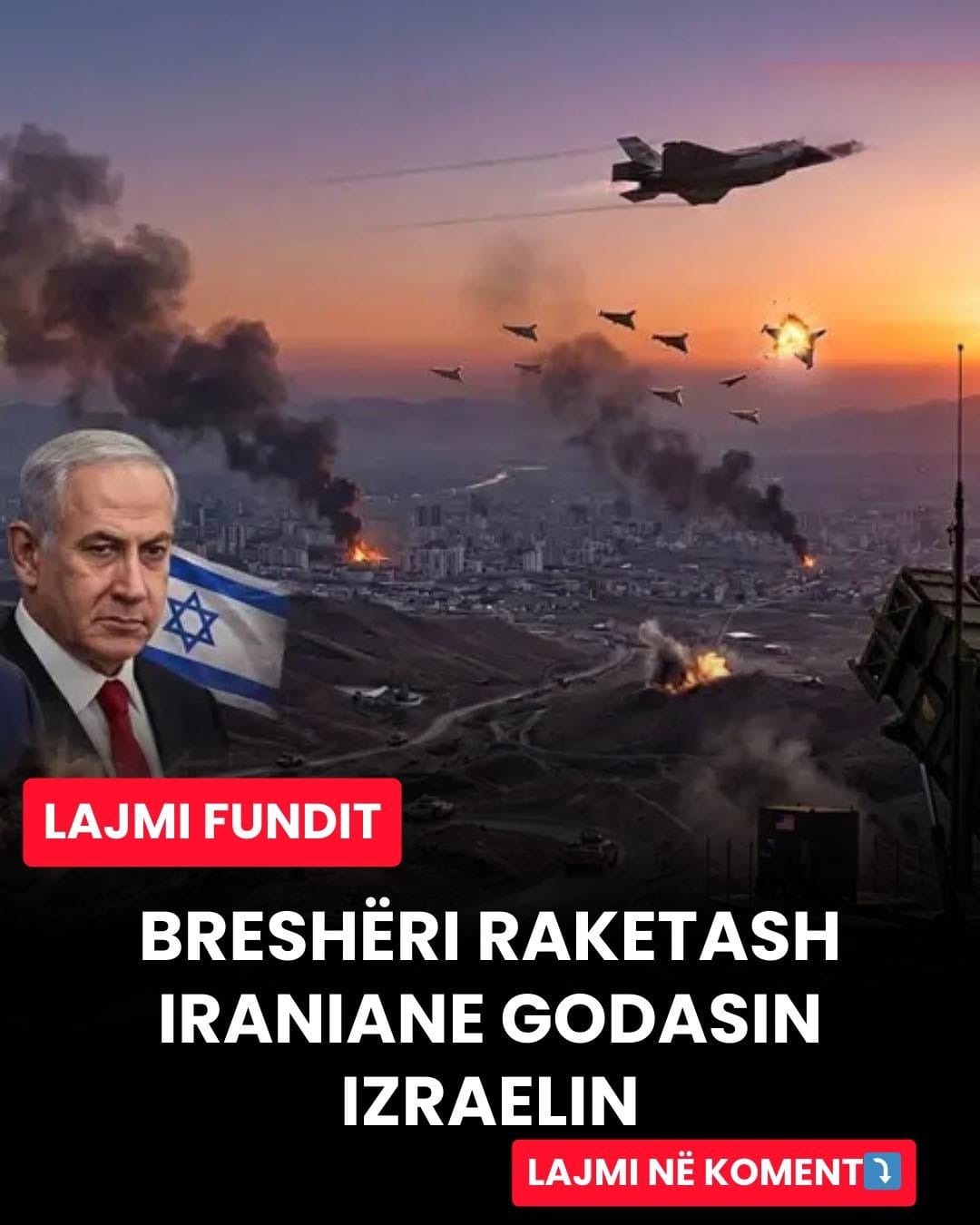 Një breshëri raketash nga Irani ka goditur disa vende në Izraelin qendror, përfshirë Tel Avivin. Deri tani janë raportuar të paktën pesë të plagosur, njëri prej të cilëve në gjendje të rëndë.Sipas autoriteteve izraelite, shumica e lëndimeve u shkaktuan nga shrapnelat e kapjes së raketave. Komandanti i policisë së qarkut, Haim Sargarof, thotë: “Ajo që mund të raportojmë tani është se jemi në skena të shumta, ndoshta është një raketë me shpërndarje, kështu që ka skena të shumta, por skena të vogla”. “Në vendin ku ndodhemi ne, ndodhet një person i plagosur rëndë i cili nuk ndodhej në një vend të mbrojtur”.
